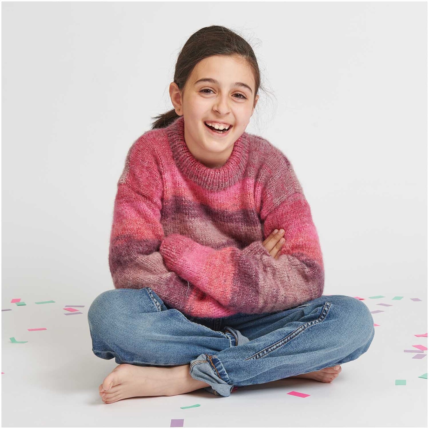 Je breit met breinaalden van 5,00 mm. Een bol Rico Creative Painted Power weegt 100 gram en heeft 310 meter draad. Voor een trui in maat 40 heb je ongeveer 4 bollen nodig. Je mag wassen op je wol wasprogramma tot 30 graden en plat laten drogen.